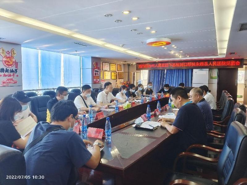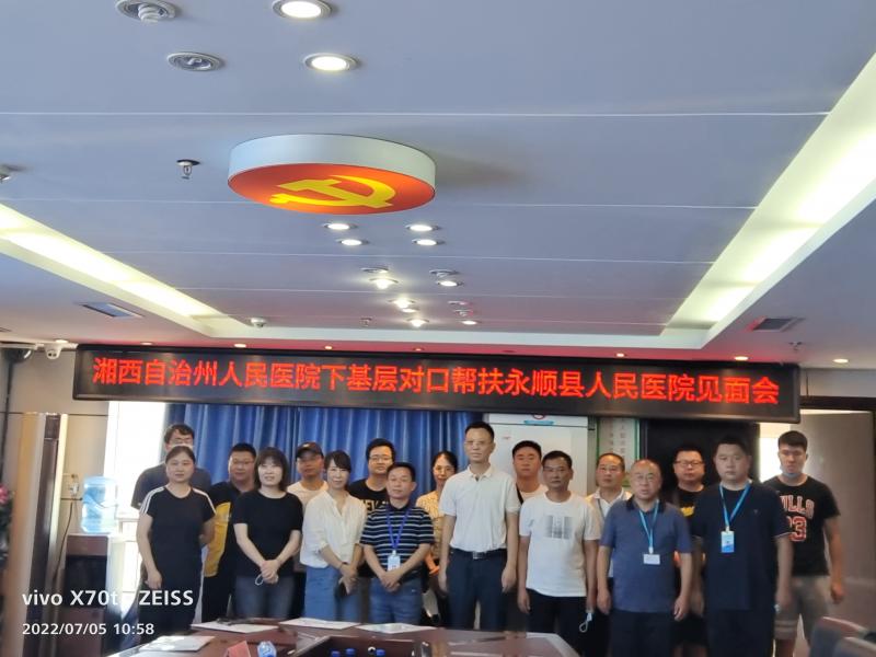 7月5日,26名临床医疗技术骨干组成两支医疗队,分别到古丈、永顺两县人民医院开展对口帮扶和下基层服务工作。两县医院领导及相关负责人积极对接,与医疗队召开座谈会,会上受援医院领导充分肯定了历届医疗队工作取得成效,对本次派驻医疗专家寄予厚望,充分发挥技术所长,共谋协作和发展,持续巩固医疗对口帮扶成效。