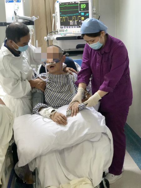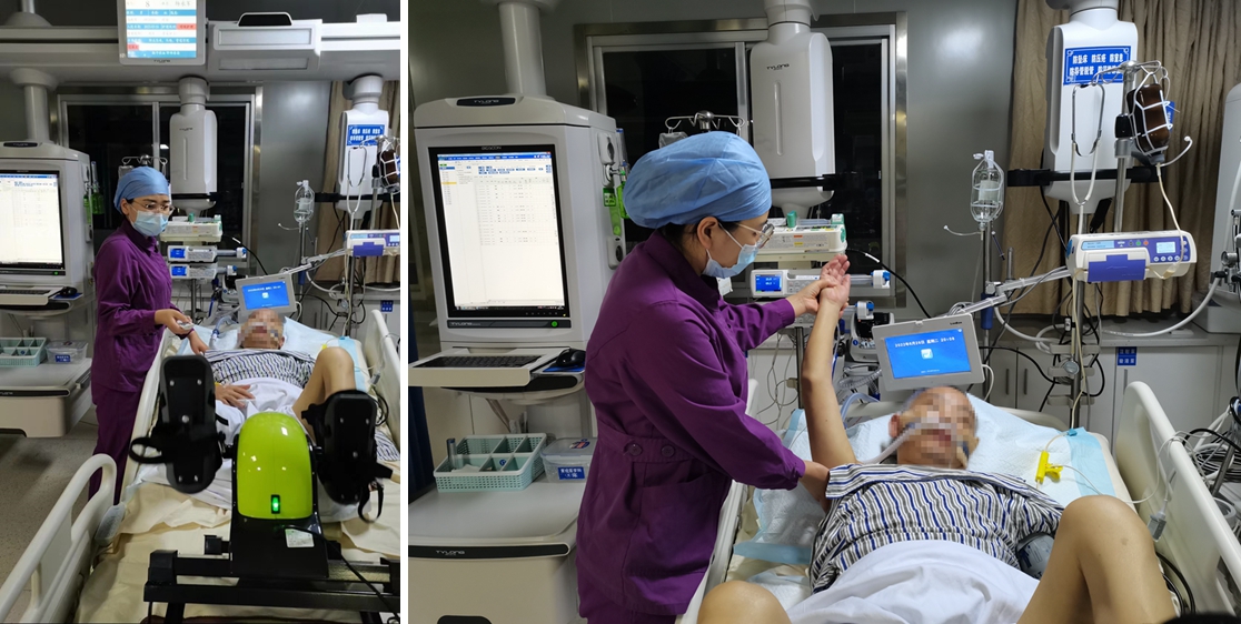 同时,针对患者ICU获得性肌无力,科主任麻怀志指导重症医学团队为患者制定康复计划,首次为重症患者实施早期离床活动,积极开展床上“踩单车”,被动、主动肢体康复锻炼,为患者回归家庭与社会奠定了早期基础。