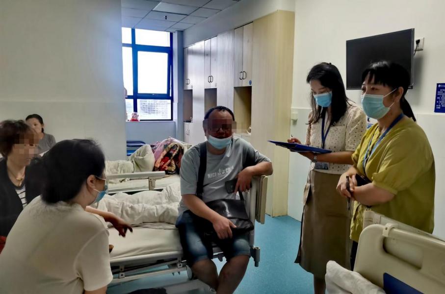 按照医院疫情防控要求及工作开展需要,院行风办改变以往组织病友及家属集中召开座谈会的形式,7月6日,工作人员走进病房,通过现场访谈、交流,倾听患者及家属的就医感受,搜集病友对医院服务的意见建议,进一步推进优化营商环境政策落地有效。