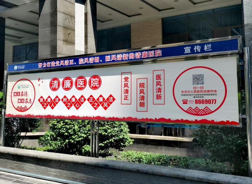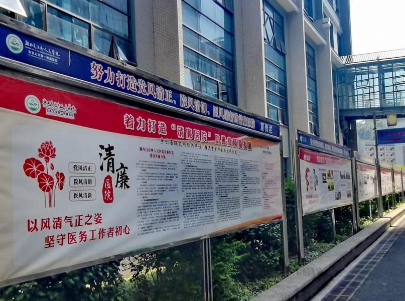清乃行医之本,廉为立院之基。我院自开展清廉医院建设以来,不断提高政治站位,精心打造清廉文化宣传教育,在单位临街外围墙、办公区走廊、医疗公共区域等人员流动比较集中的地方,建立清廉文化长廊,推送清廉文稿作品,制作张贴精美的清廉文化宣传画,同时将清廉文化利用电子显示屏滚动播出,起到了传播清廉知识、弘扬清廉文化、启迪清廉思想的作用。