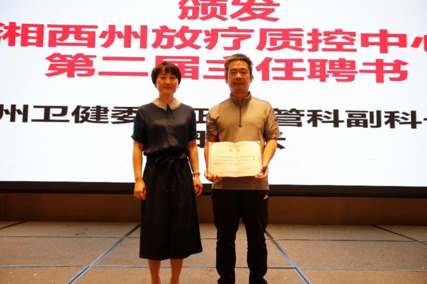为第二届湘西州放疗质控中心主任赵景胜教授颁发聘书