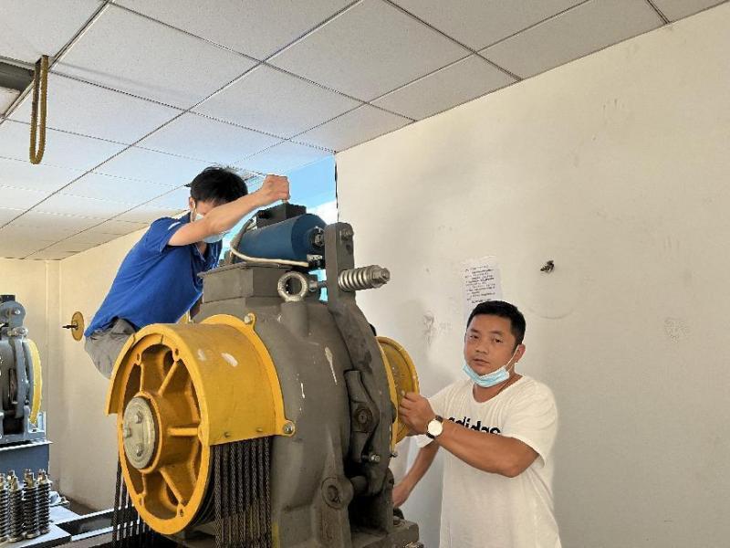 电梯维保人员到电梯机房进行盘车,将电梯盘至可将被困人员安全救出位置。