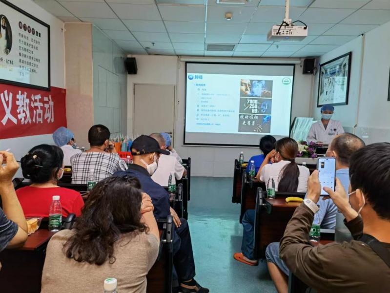 医师就湘西地区常见恶性肿瘤的预防及早期识别做通俗易懂的讲解,鼓励患者及家属对疾病进行早期的识别,早诊早治,劝诫亲属戒烟戒酒戒槟榔,保持健康生活习惯。