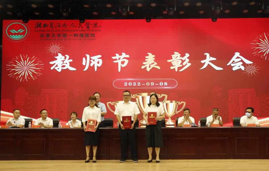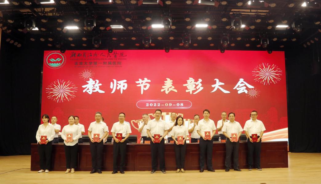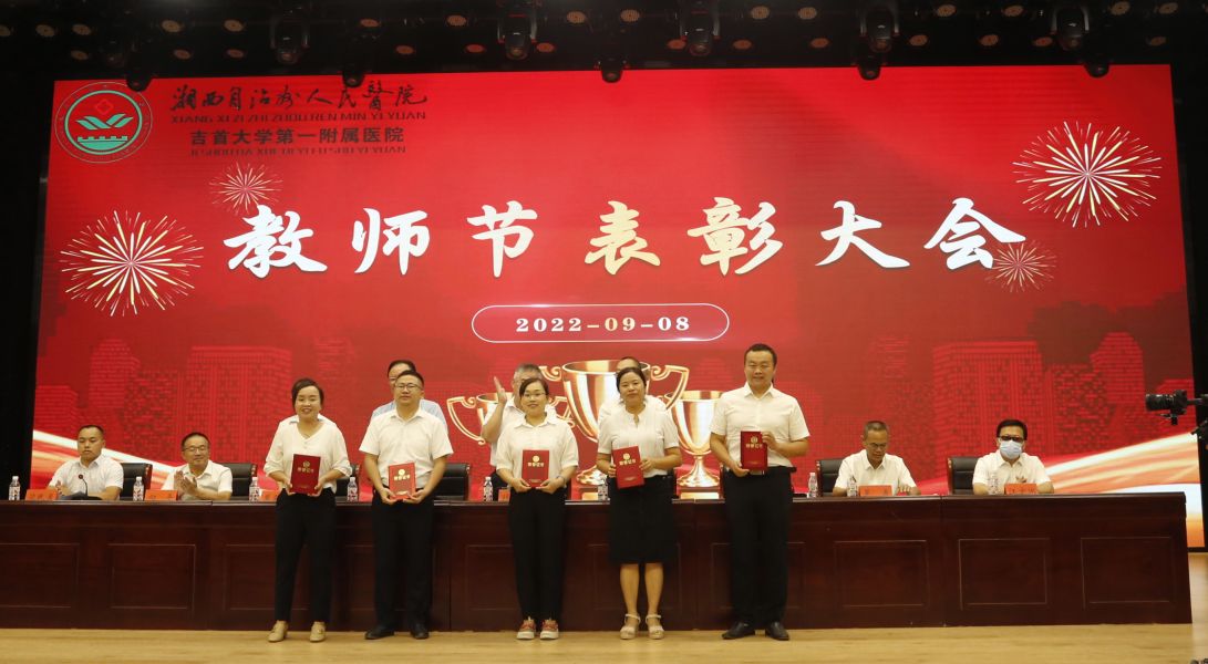 院长黄纯海致辞,他代表医院向全体教师致以节日的问候和衷心的祝福!向一直以来为医疗卫生事业培育人才、辛勤付出的广大教师表示诚挚的感谢!向受到表彰的优秀集体和个人表示热烈的祝贺!他表示,我院扎实开展科研教学各项工作,取得了积极成效,在肯定成绩的同时他还对全院干部职工提出了进一步的殷切期盼,要持续抓好科研教学等医院各项工作,积极助力医院高质量发展,用实际行动隆重庆祝建院70周年,为顺利迎接党的二十大胜利召开献礼!