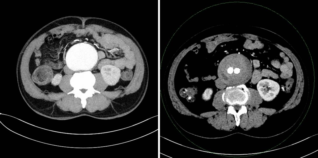 患者今年66岁的,因胃反酸不适在消化内科住院,通过检查发现了巨大腹主动脉瘤。