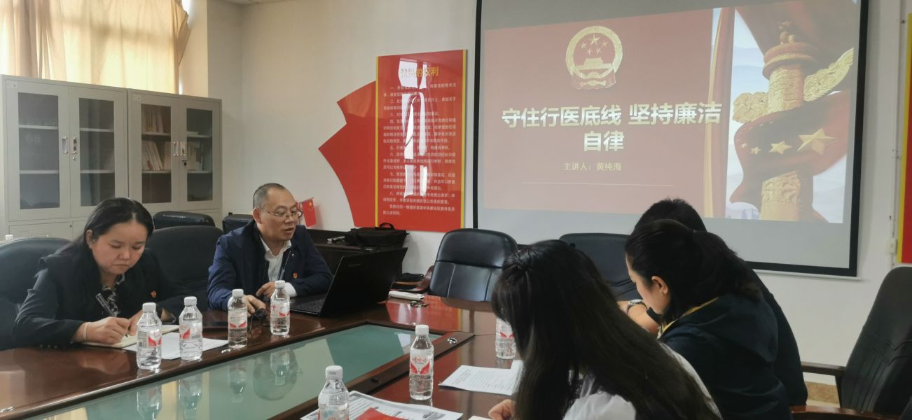 黄纯海参加第十一、十二党支部联合组织的“学习党的二十大精神、建设清廉医院”主题党日活动,为党支部上了一堂《守住行医底线 坚持廉洁自律》的专题党课。
