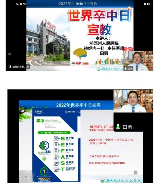 为了配合疫情防控政策,10月29日,神经内一科主任田勇采用线上直播方式进行“识别中风症状,把握宝贵时间”的卒中防治知识宣讲。