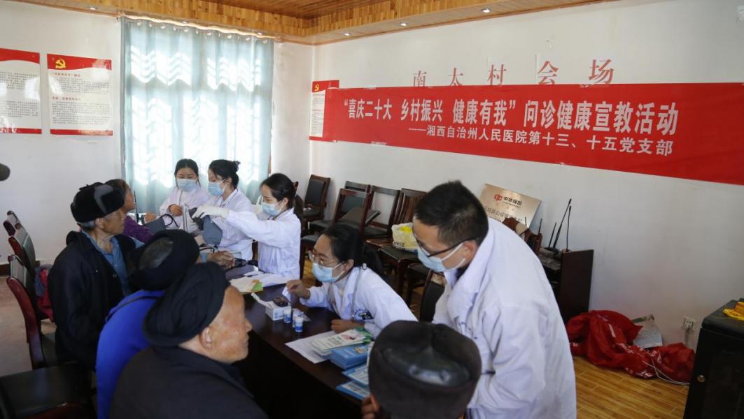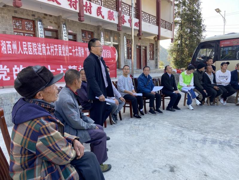 11月3日,湘西州人民医院第十三、十五党支部,关工委到花垣县南太村与医院乡村振兴工作队、南太村党支部联合开展“院坝小讲堂”,通过微宣讲、拉家常、送健康、话振兴、唱苗歌的方式宣传党的二十大精神。