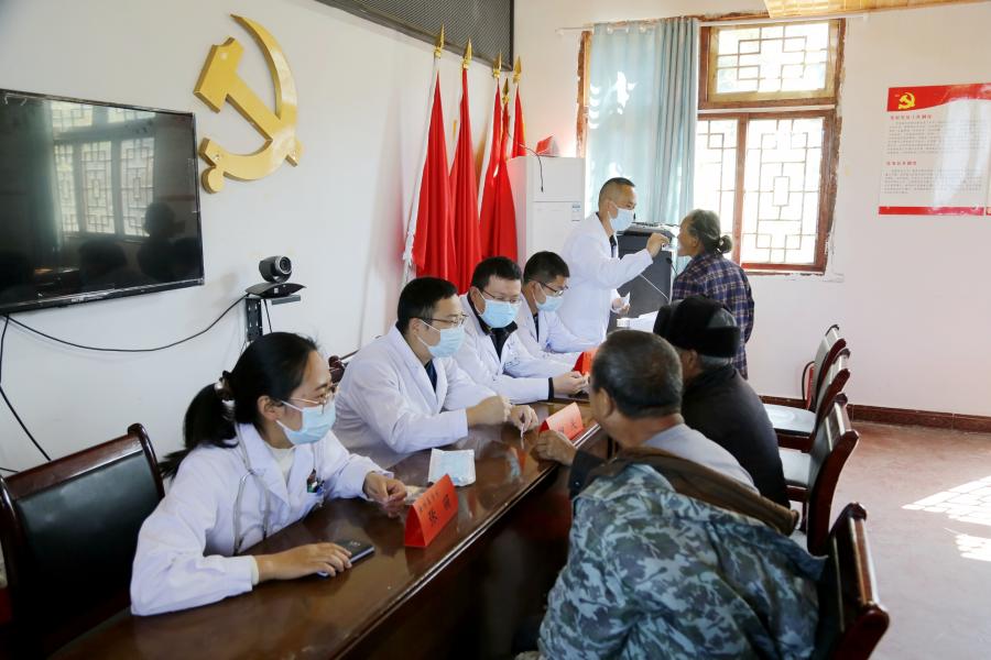 义诊服务现场,医护人员为村民免费测量血压、血糖,针对常见疾病进行科普,耐心解答村民提出的问题,让“院坝小讲堂”成为理论宣讲的“服务站”、贴近群众的“连心桥”。