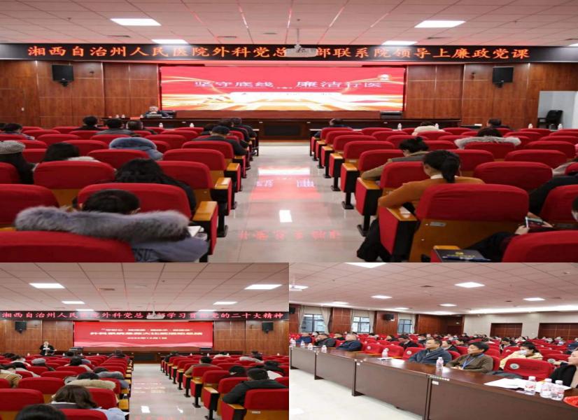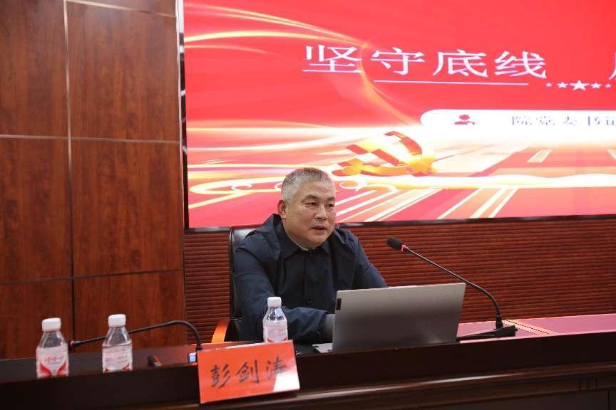 12月1日下午,院党委书记彭剑涛来到职工之家三楼学术报告厅,为外科党总支部全体党员、入党积极分子、外科片区主任及护士长160余人上廉政党课、学习贯彻党的二十大精神。