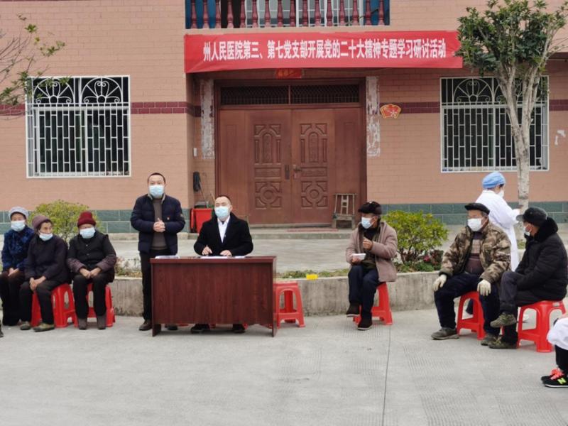 12月16日,湘西州人民医院第三党支部、第七党支部组织部分党员干部赴吉首市马颈坳镇雅沙村,开展“一课一片一实践”活动,在送健康实践中深入学习宣传贯彻党的二十大精神。