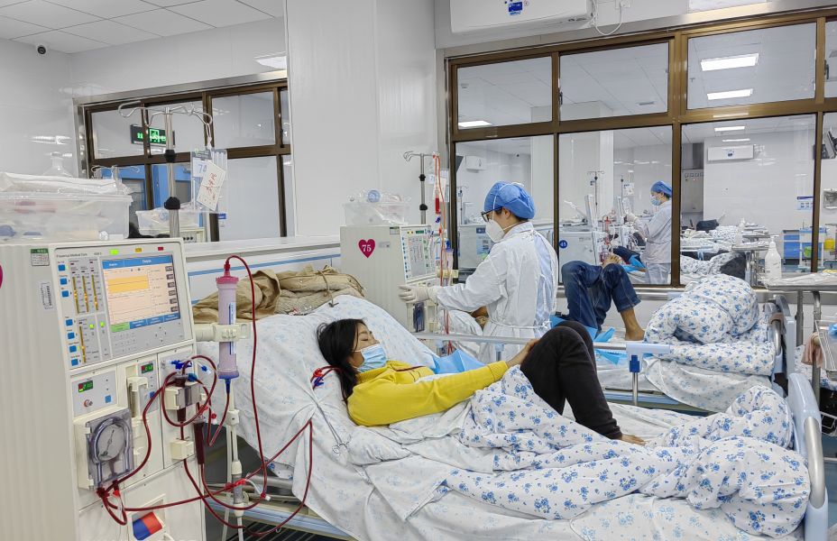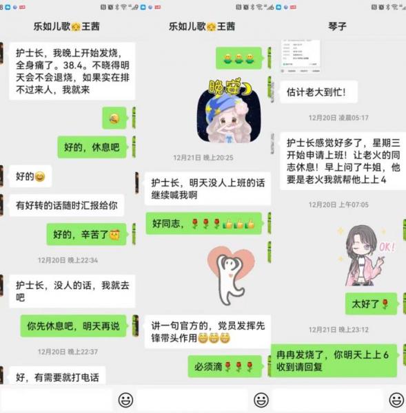 政策调整后,血液净化中心面临着前所未有的压力,一周之内全体医护人员的身体都亮起了红灯,接二连三出现了寒颤、发热、全身酸痛、呕吐等症状。一边是调整不断转阳的患者班次,一边是不断感染倒下的医护人员,然而因血液净化中心护理工作专科性强、风险性高,注定短时间内根本无法从外面获得人员补充,在不断减员的情况下,主任张华、护士长谭德娟以身作则,带病在岗,每天坚守岗位十多个小时。