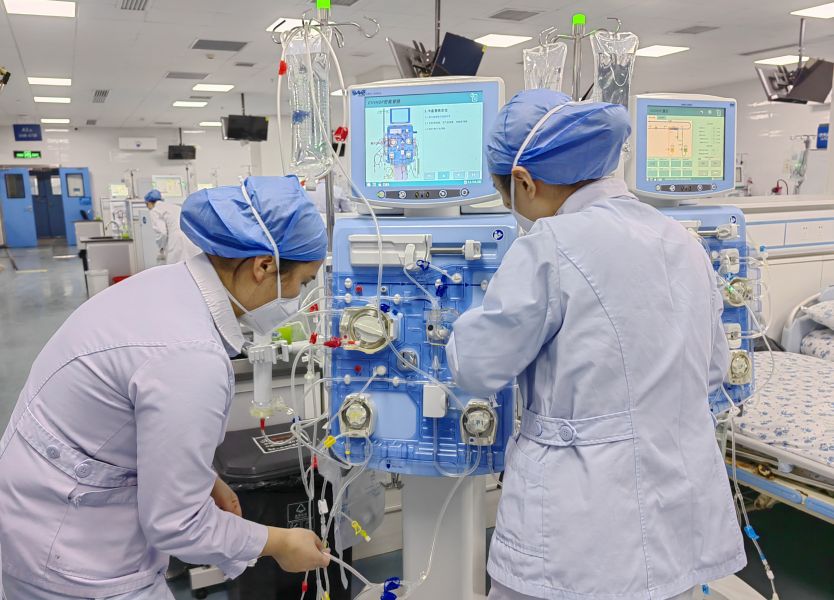 随着疫情防控政策调整后,新冠病毒感染峰值快速来临,对“基础疾病多、免疫力低下、必须规律性治疗”的维持性血液透析患者来说,是一个巨大的挑战。血液净化中心目前承担300多名常规透析患者透析任务,74台血透机器,周一至周六每天不停运作,不论是刮风下雨,还是逢年过节血透患者都必须连续治疗。如果长时间不透析,就会出现严重并发症,如高钾血症、心力衰竭等,死亡率极高。血透肾友离不开医院,离不开血液净化中心。