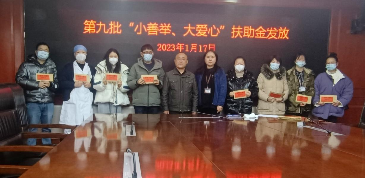 近几年来,我院切实组织开展“小善举•大爱心”活动,2018年以来连续五年组织全院职工通过省人口健康福利基金会号召募捐善款28.9万余元,先后五批次扶助困难职工66名,发放爱心扶助资金22.5万元,产生了广泛的社会影响。本次第九批“小善举•大爱心”慰问向需要帮助的20名困难职工传递了爱心温暖,送上了春节祝福,发放扶助金共计6万元。