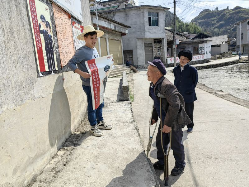 活动现场,法制宣传员向村民宣传妇女权益保障法、未成年人保护法、宪法、民法典、反家庭暴力等法律法规,为村民提供法律咨询服务,帮助村民提高法律意识;在村委橱窗、宣传栏张贴法治宣传海报,入户发放防范电信网络诈骗、养老诈骗、防范医托宣传手册,教育引导妇女儿童增强自我保护意识,提高防范诈骗能力。