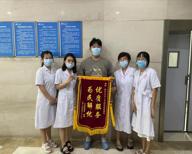患者家属赠送表扬锦旗,感谢住院结算中心工作人员的竭诚服务