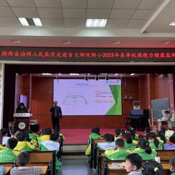 为科学、规范做好州内儿童青少年近视防控工作,增强学生爱眼、护眼,养成良好的用眼习惯,3月下旬,湘西州人民医院眼视光中心医务人员先后到师院附小、州民族实验小学开展学生视力筛查及近视科普知识宣讲。