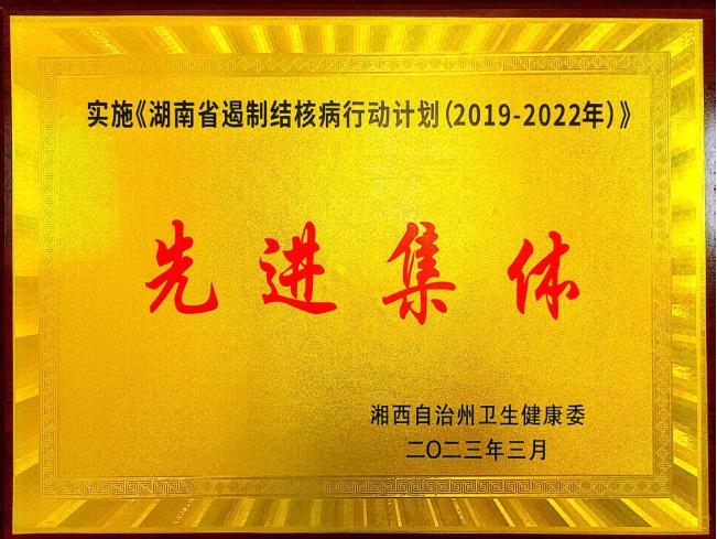 近日,湘西州人民医院在结核病防治工作中获得湘西州卫健委颁发分的《湖南省遏制结核病行动计划(2019-2022年)》“先进集体”荣誉称号。
