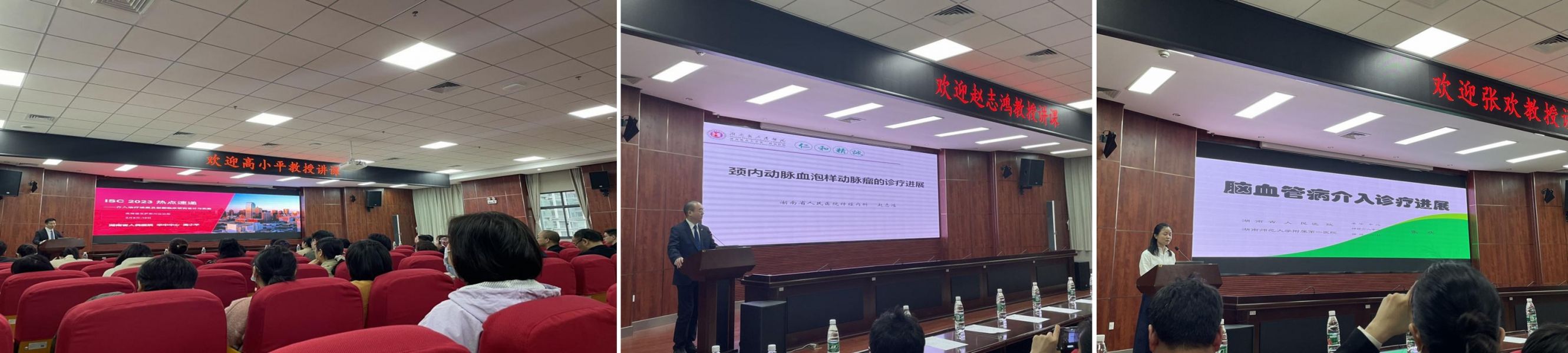 学术交流环节,高小平教授以《ISC2023热点速递-介入治疗进展及创新临床研究设计与实施》为题,传递了血管内治疗的多项最新研究进展及后循环取栓的分析,并结合目前地区医院实际情况,就如何优化溶栓流程,提高医院科室联动及区域的转运效率进行交流,对不断提升我院卒中中心建设意义重大。赵志鸿教授分享了《颈内动脉血泡样动脉瘤的治疗进展》,将宝贵的临床经验和先进诊疗理念倾囊相授。张欢教授分享了《脑血管介入诊疗进展》,有助于进一步提升神经科相关医师的脑血管疾病诊疗技术,规范医院介入治疗的诊治。